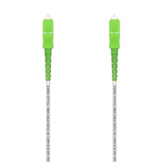 AISENS Cable Fibra Óptica Latiguillo G657A2 3.0 9/125 SMF Simplex CPR DCA LSZH, SC/APC-SC/APC, Blanco, 3.0 m, 3 m, G.657.A2, SC, SC