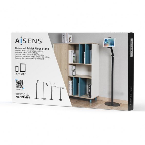 AISENS Soporte De Suelo Universal Ajustable (2 Pivotes) Para Tablet, Negro, Teléfono móvil/smartphone, Tablet/UMPC, Soporte activo para teléfono móvil, Interior, Negro