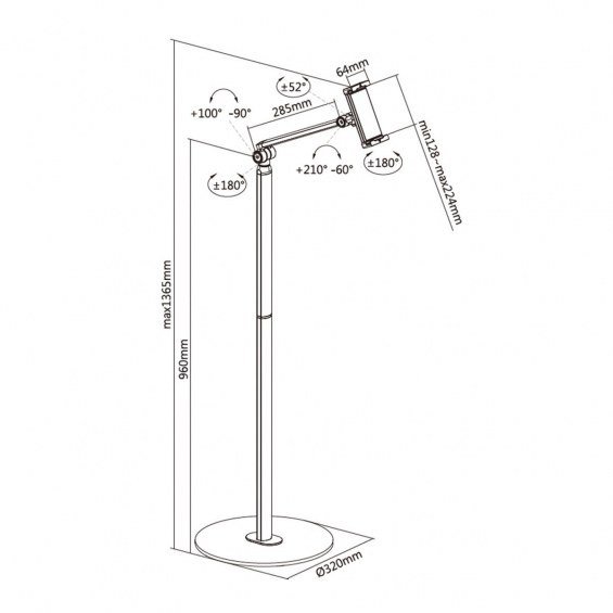 Aisens - Soporte De Suelo Universal Ajustable (2 Pivotes) Para Tablet, Negro
