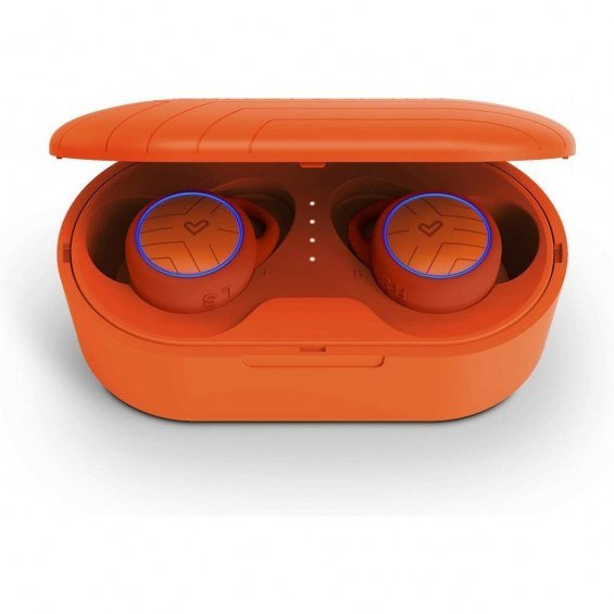 Olvídate de los cables y practica tu deporte favorito con estos auriculares True Wireless diseñados para deportistas. Sujeción y confort. Resistente a salpicaduras y 20 h de autonomía total. Carga del charging case con conector tipo USB-C.