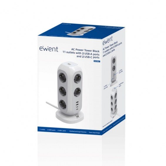 Ewent EW3861 Regleta 11 tomas 2 Usb y 2 Usb-C