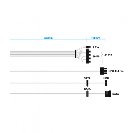 | Longitud del cable de alimentación SATA: | 330,480 mm | |