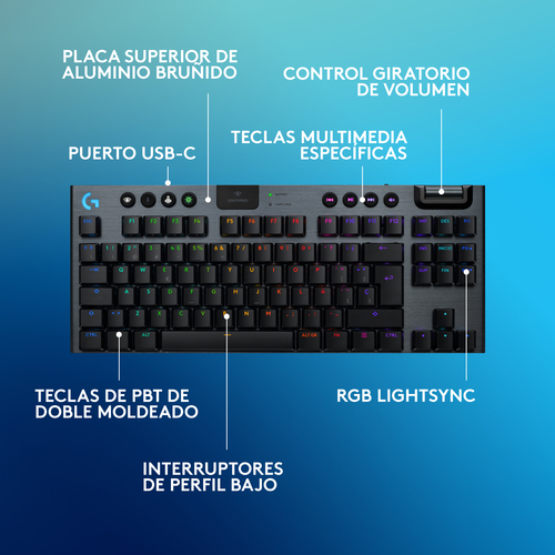 Logitech G G915 X LIGHTSPEED TKL Gaming Keyboard - Wired/Wireless Connectivity - USB Interface - RGB LED - Black - Mechanical/GL Keyswitch - Bluetooth/RF - 2.40 GHz - Roller Bar, Multimedia Hot Key(s) - Windows 10, Mac OS X 10.11 El Capitan, Windows 11, Mac OS X 11.0 Big Sur, ChromeOS, Android 4.3 Jelly Bean, iOS 10 - PC, Mac - Aluminium Alloy