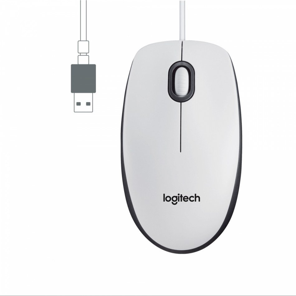 Logitech M100, Ambidextro, Óptico, USB tipo A, 1000 DPI, Blanco