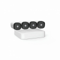 La carpa del kit de vigilancia incluye 1 NVR PoE y 4 cámaras de seguridad tipo bala PoE. Integra funciones como plug and play, calidad de imagen HD de 4MP, visión nocturna por infrarrojos, detección humana por IA, decodificación de video de alto rendimiento H.265, aislamiento del sector defectuoso del disco duro, almacenamiento en la nube de canales, resistencia al agua y al polvo IP67 (cámara) y monitoreo remoto. a través de la aplicación.