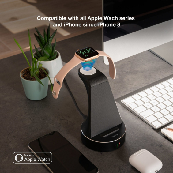 TooQ - Base de Carga Inalámbrica para Apple Watch y iPhone/Smartphone, Negro
