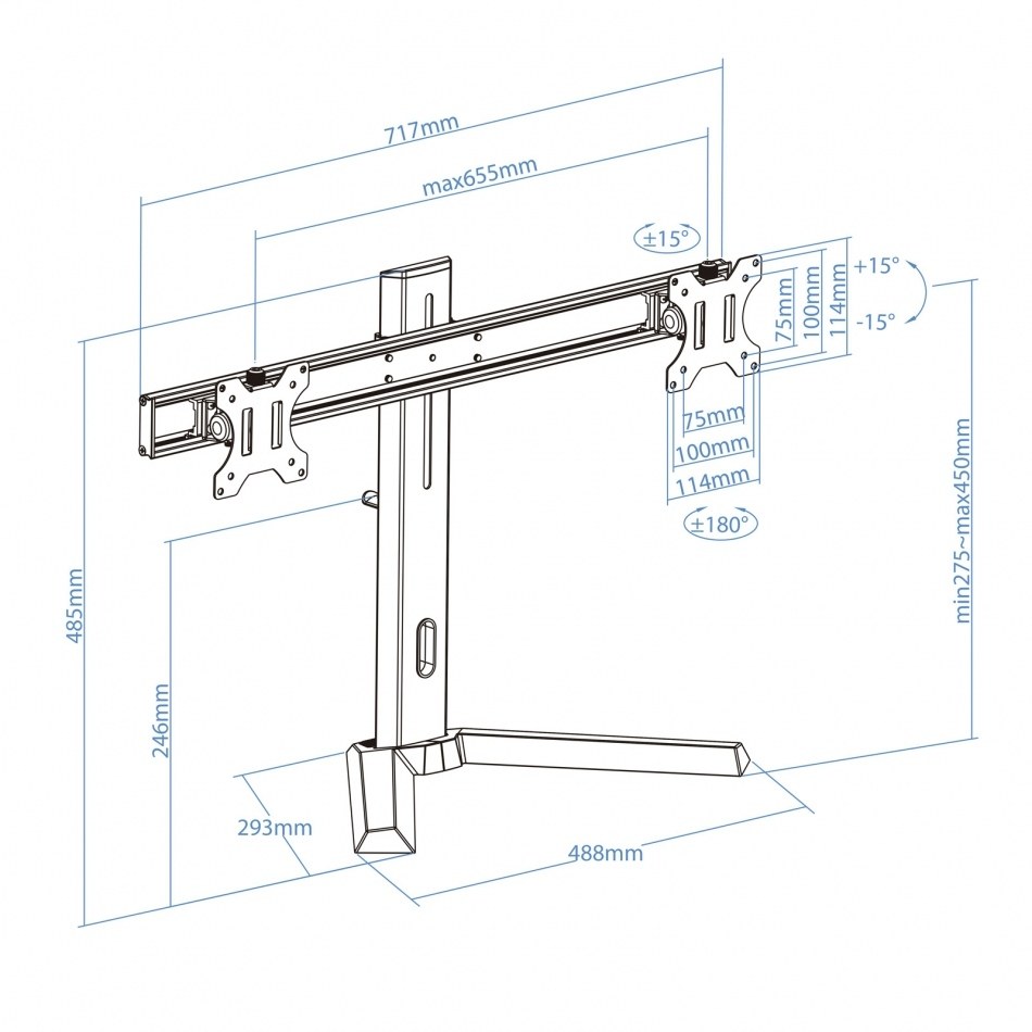 Ángulo de inclinación: -15 - 15°