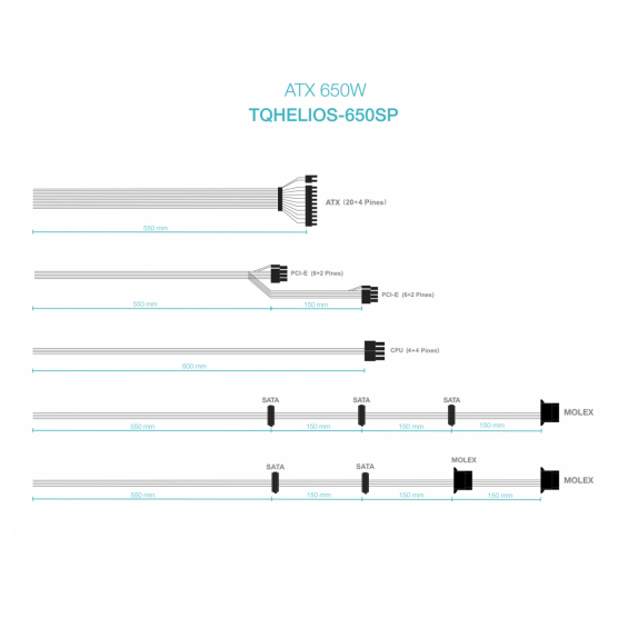 | Longitud del cable de alimentación SATA: | 550,700,850,1000 mm | |
