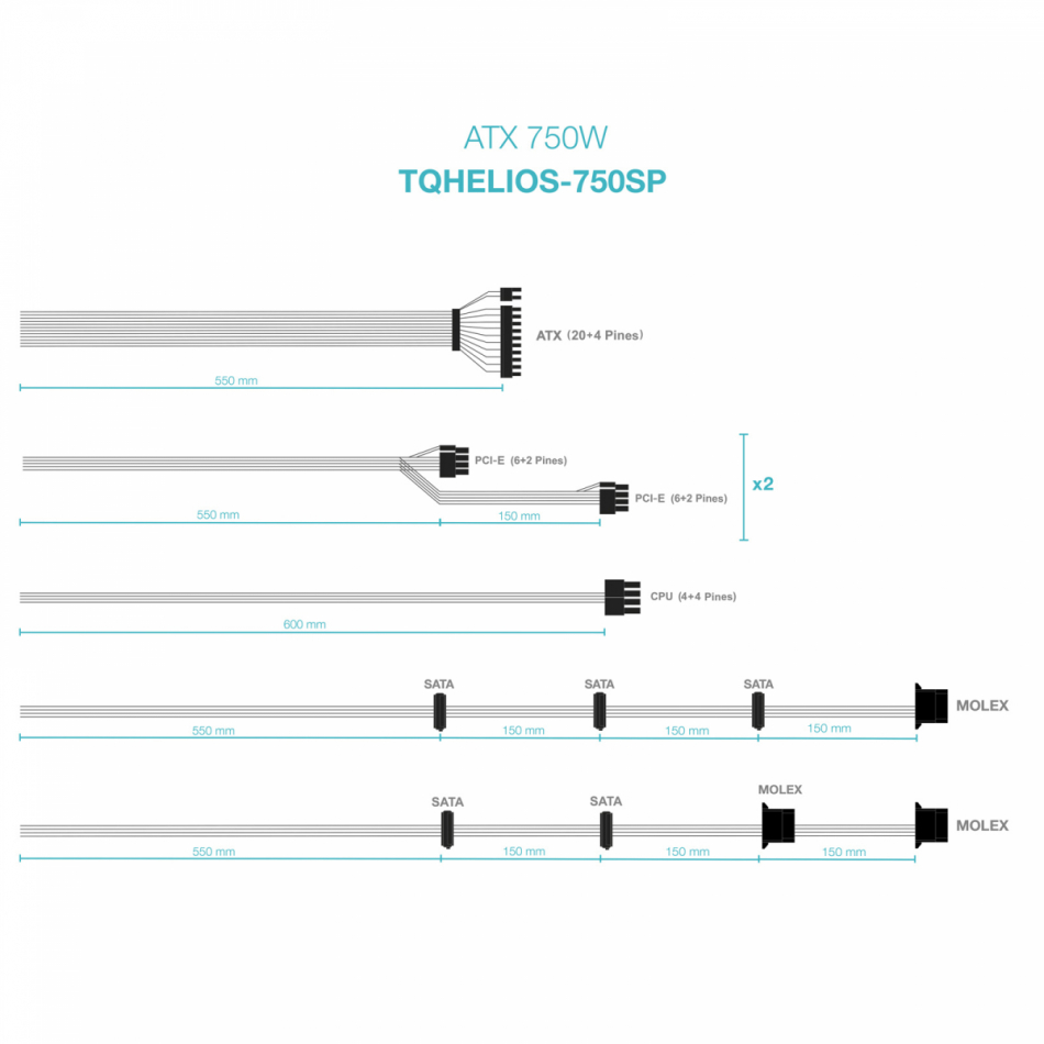 | Longitud del cable de alimentación SATA: | 550,700,850,1000 mm | |