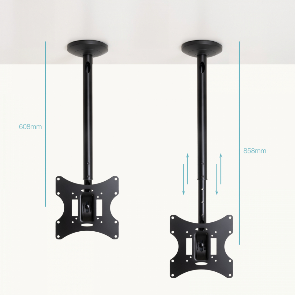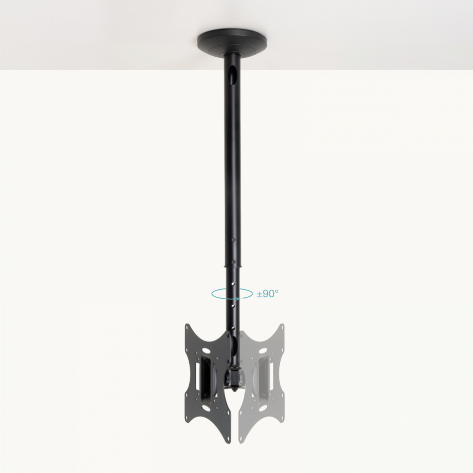 TooQ Soporte de Techo para pantallas 23”-42”, Negro, 75 x 75 mm, 200 x 200 mm, -20 - 20°, -90 - 90°, Acero, Negro