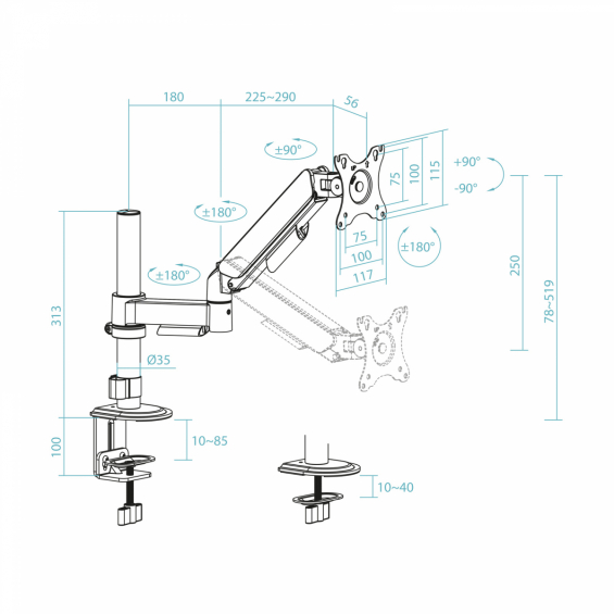 TooQ SOPORTE MESA PANT. GIRA INCLI 1 BRAZO 17-32 NEGRO
