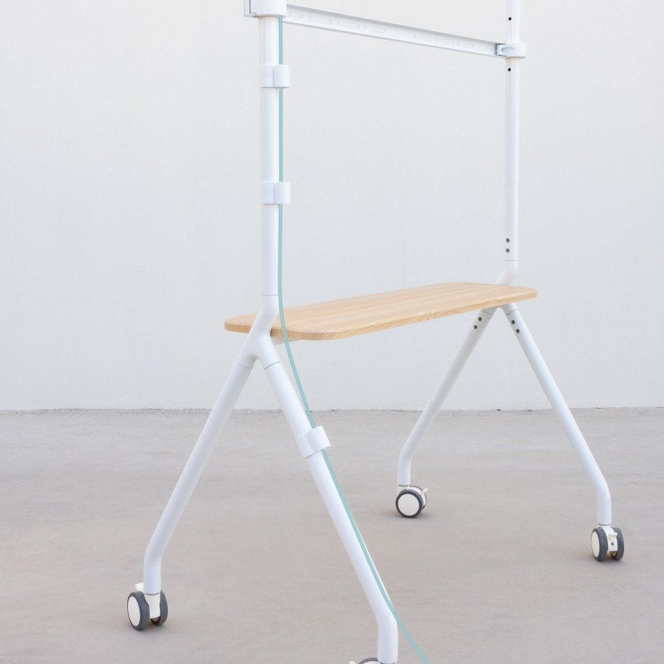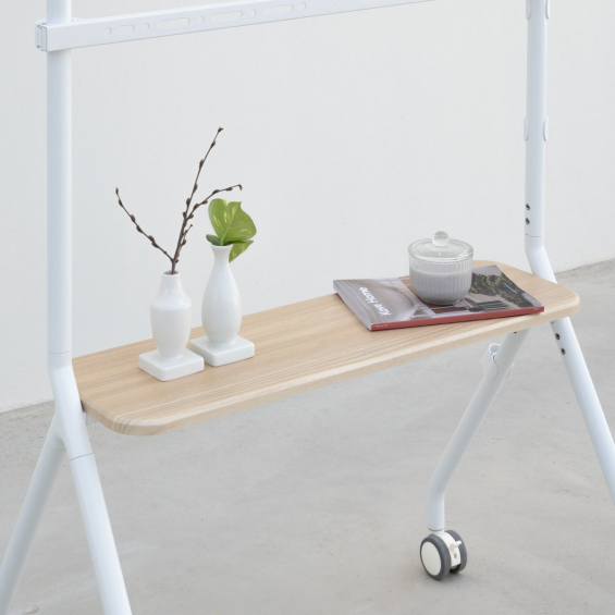 TooQ iLOVE Soporte de Suelo con Ruedas para Pantalla 49-80, Blanco y Haya, 50 kg, 124,5 cm (49), 2,03 m (80), 775 - 1075 mm